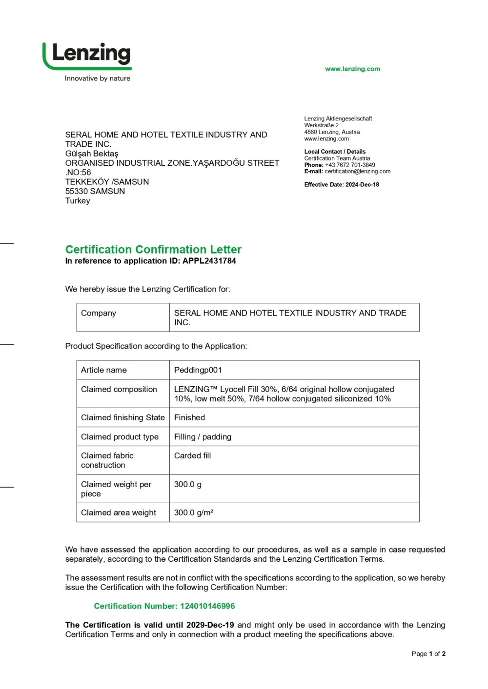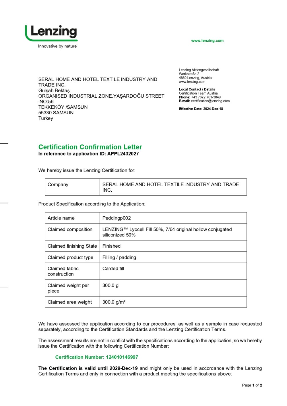Sertifikalar